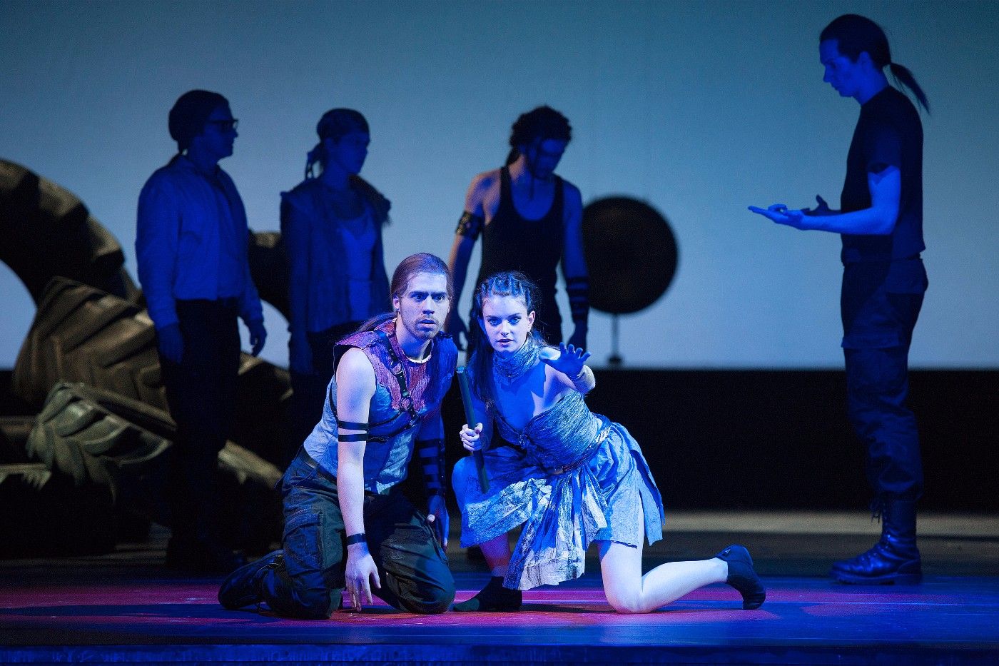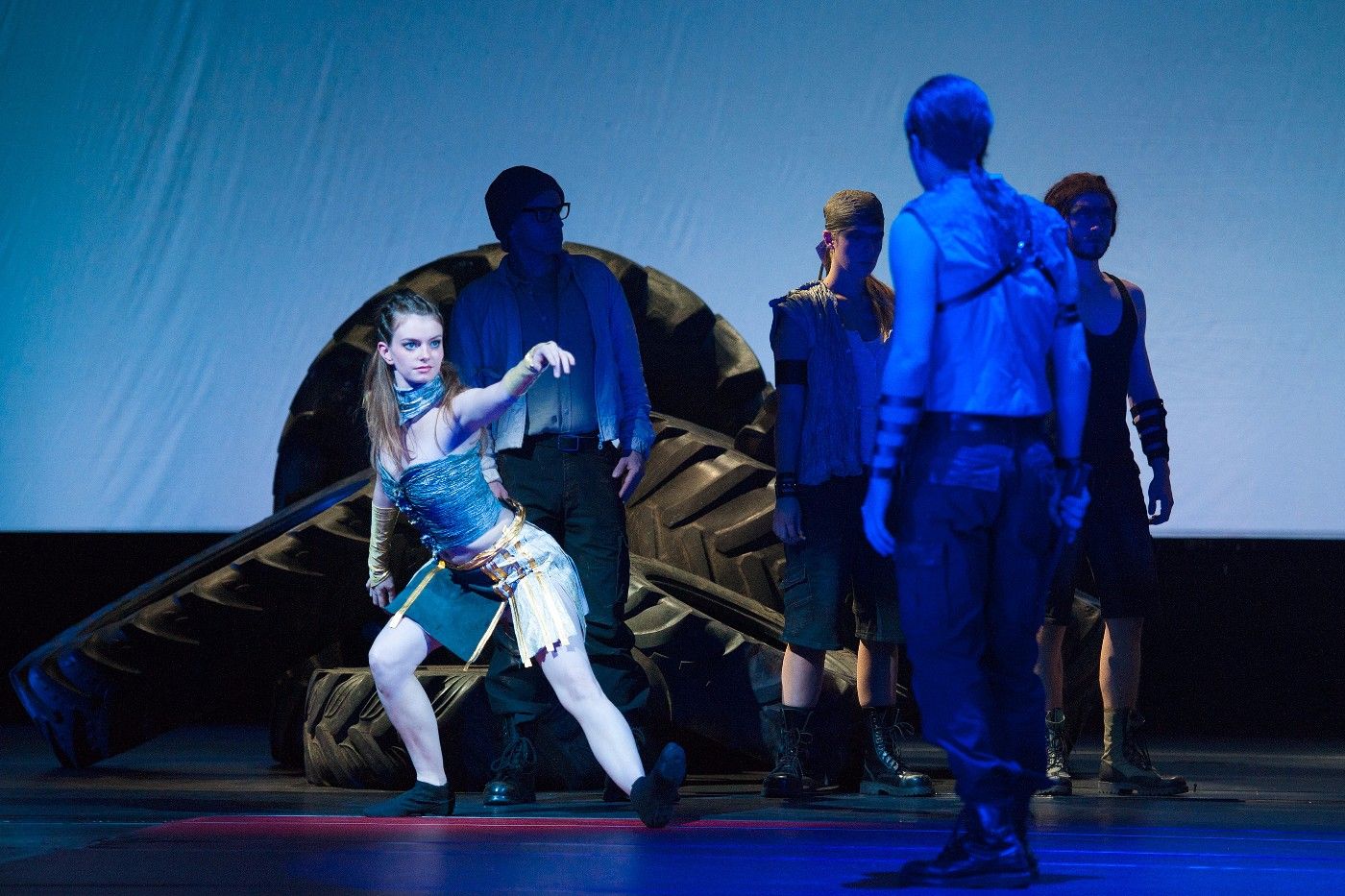 Richtig gut gelungen: die gleichrangige Zusammenführung aller Sparten: Schauspiel, Tanz, Gesang in fünf Sprachen – kein illustratives Beiwerk, sondern farbige Substanz.